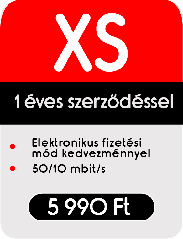 Az árak 1 500 Ft/hó fizetési mód kedvezményt tartalmaznak. Átutalással vagy csoportos beszedési megbízással kiegyenlített, és e-mailben küldött PDF formátumú számla esetén. Amennyiben mégis a hagyományos csekkes fizetési módot választja, úgy az 1 500 Ft fizetési mód kedvezményt nem tudjuk biztosítani.