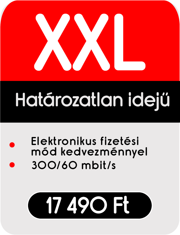 Az árak 1 500 Ft/hó fizetési mód kedvezményt tartalmaznak. Átutalással vagy csoportos beszedési megbízással kiegyenlített, és e-mailben küldött PDF formátumú számla esetén. Amennyiben mégis a hagyományos csekkes fizetési módot választja, úgy az 1 500 Ft fizetési mód kedvezményt nem tudjuk biztosítani.