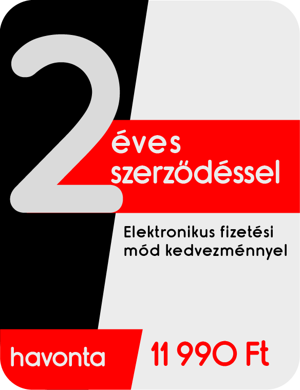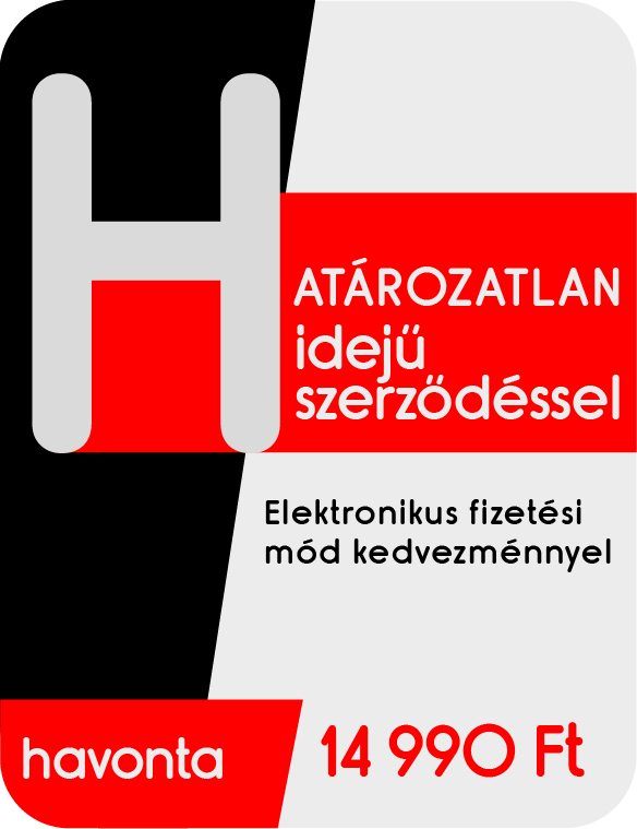 Az árak 1 500 Ft/hó fizetési mód kedvezményt tartalmaznak. Átutalással vagy csoportos beszedési megbízással kiegyenlített, és e-mailben küldött PDF formátumú számla esetén. Amennyiben mégis a hagyományos csekkes fizetési módot választja, úgy az 1 500 Ft fizetési mód kedvezményt nem tudjuk biztosítani.